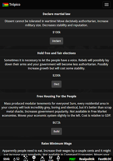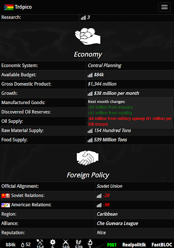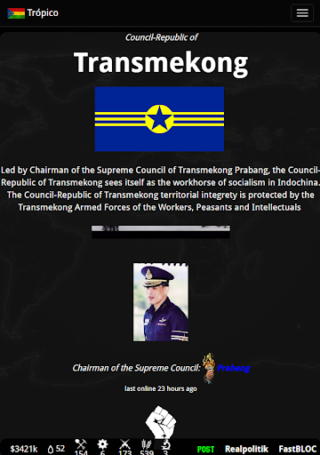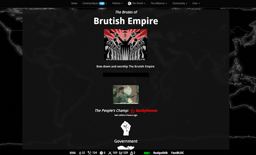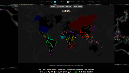 BLOC is an MMO nation simulation game. Create and lead your own nation in this political simulation game.