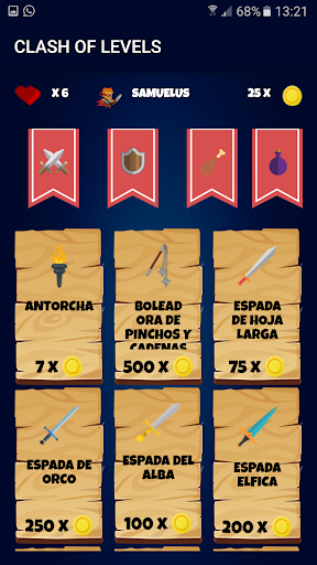 Clash of Levels es un juego en el que dos hermanos luchan por salvarse entre sí de las garras del temible Rey Tordor del Clan Mojón. Se desarrolla sobre 6 diferentes niveles, el bosque, las ciénagas, la cueva, las catacumbas, las mazmorras y el castillo. Cada nivel tiene 6 subniveles. Tu personaje tendrá que recorrer el tablero de cada uno de los subniveles, en los que se podrá encontrar, dinero, vidas, trampas de todo tipo y enemigos. Cada enemigo tiene su propia personalidad y sus propios valores de vida, ataque, defensa y daño. Para completar cada subnivel, tu personaje tendrá que derrotar a todos los enemigos que se encuentre. Para ello dispone de una tienda en la que podrá comprar todo tipo de armas, escudos, comida y pócimas para mejorar el personaje y hacerle más poderoso.