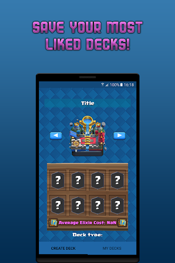 A very nice designed app which is based on the main Clash Royale play strategy, the deck. This application lets the user to store his favourite decks and never lose them. It also has a lobby, where many experienced players add their powerful decks. We have admins that take care of the published decks to make sure there are only playable decks. Also, for more information about how the deck is used, you have an “info” button and you can see the description (hopefully there will be written the deck usage) 😀