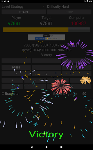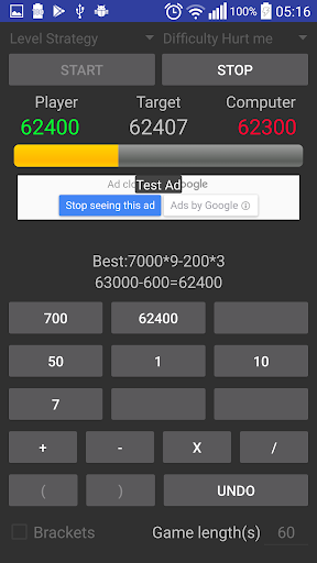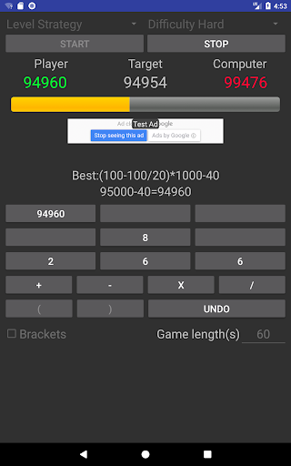 Set game type (number of numbers to be used), and game difficulty and try to beat the computer