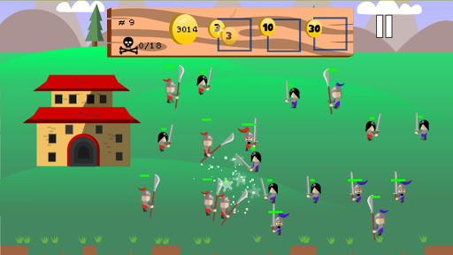 It is the warring states period in Chinese history. You are the leader of the state of Qin. Warriors under your command belong to 3 different groups. They are sword warrior, spear warrior and general. In the battle field, each warrior has different skills. The more skilful warrior cost more to train. The general is the strongest. The general can easily defeat the spear warrior and the sword warrior. The spear warrior can easily defeat