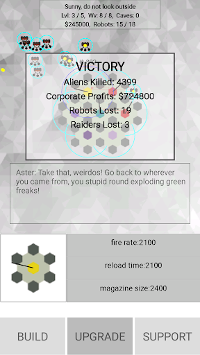 What follows is a struggle for the survival of humanity, and of The Corporation. Through five increasingly frantic levels, you will fight to repel a persistent yet profitable alien invasion of Earth’s solar system. In the end, you may or may not be the one to save Earth, but your decisions in the final level will inevitably have a lasting impact on the future of humanity.