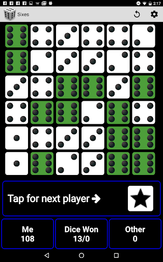 Use your skill (& a little luck) to turn dice to sixes. Play against your device & score points by turning as many dice as you can into a 6.