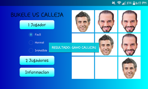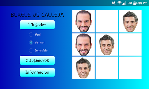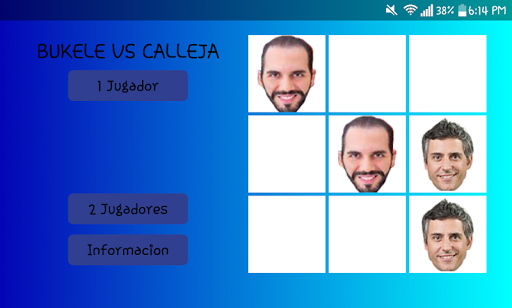 Bukele VS Calleja es una reinvención del juego clásico “3 en raya”, teniendo esta ocacion como protagonistas ha 2 de los políticos mas populares de El Salvador. Pon aprueba tu capacidad de análisis jugando contra la IA del juego o, contra tus amigos.