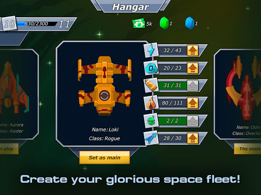 Buy, equip and upgrade your spaceships to create an invincible space fleet!