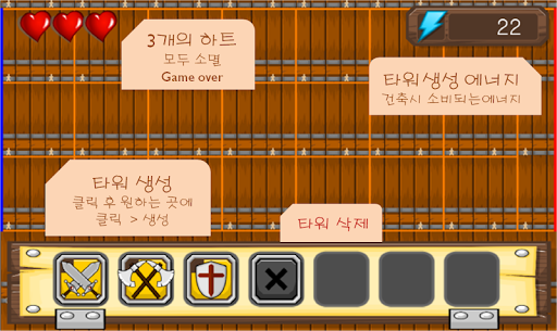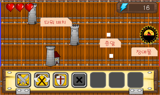 에너지를 모아 타워를 설치, 파괴할 수 있으며, 타워는 해당 라인의 몬스터에게 원거리 공격을 한다.