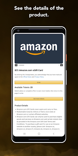 This app simply allows a safe and verifiable way to obtain FREE tickets! Once you have your tickets you can then open the website and find the sweepstakes you wish to use your tickets on. Then just click the “Enter Sweepstakes” button to use one of your tickets for that sweepstakes.