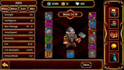 Fight in dark caves, snowy mountains, dark forests, and filthy swamplands. Use your strategy to overcome new challenges. Specialize your hero by choosing talents and hunt for mystic items that grant distinct abilities.