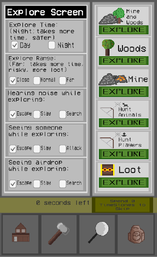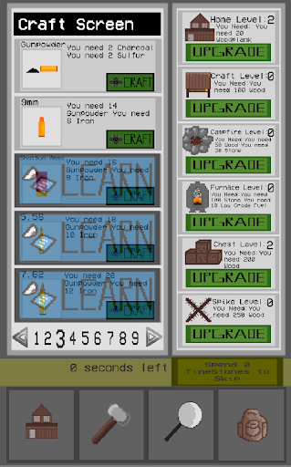 Craft: You can craft plenty of items like armors, guns or bullets with resources or you can upgrade your home for bigger inventory and safety.
