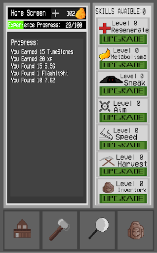 Home: You have to upgrade your skills to survive and for that you have to earn xps.
