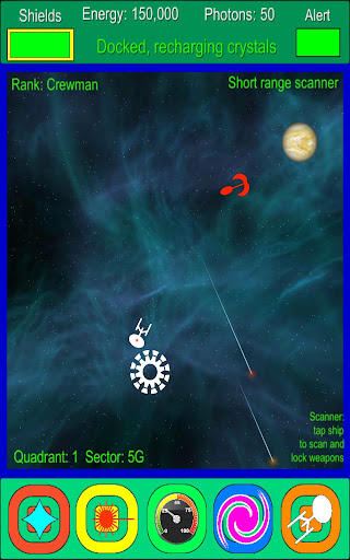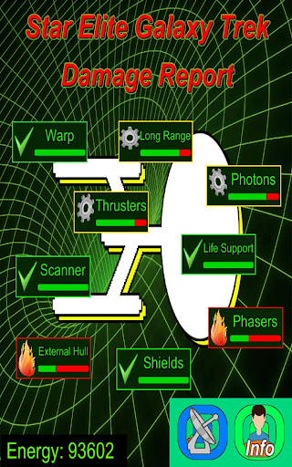 Your ship, The Peace keeper, has extensive energy crystals, photon torpedoes as well as high energy shields. Which means energy is vitally important, its used to power weapons, shields, repairs and most importantly life support. If your ship sustains heavy damage, or severe energy drain then you may need to locate space dock for extensive repairs and energy resupply.