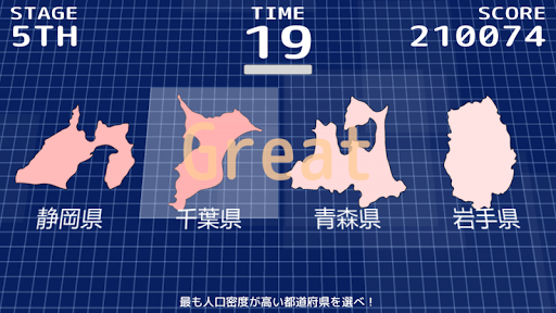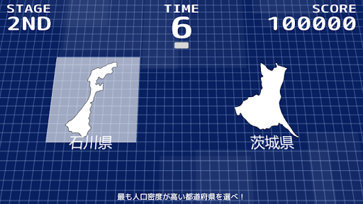 人口密度が最も高い都道府県を選んでいくゲームです。
