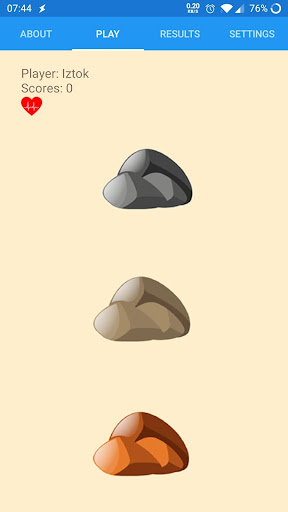 Application hides a bomb under randomly selected stone. Choose a stone and hope that the bomb will not be detonated. Of course, the application will hide a bomb under the randomly selected stone again in the next round. Each time you successfully flip the stone without detonating the bomb, you get one point.