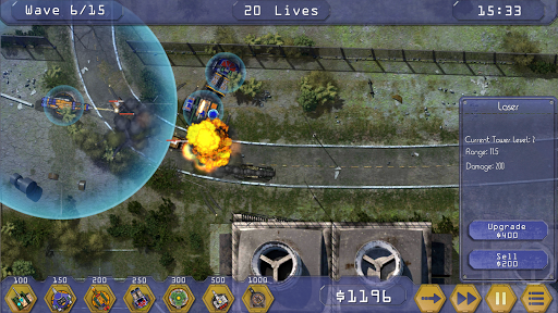 The game has 7 types of towers that can be improved to level 4.