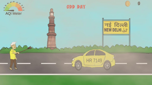 Game Rules -AQI will keep ticking from 0 to 100 meaning air quality is getting worse, You have to hit Even Numbered Vehicles on Odd Day and Odd Numbered Vehicles on Even Day with broom stick to control fleet and keep the AQI below 100,If you are not able to control the fleet AQI reaches 100 ,Game over. If you did reverse means hit Even Numbered Cars on Even Day and Odd Numbered Cars on Odd Day you will end up losing. Cars with Lady Tag shouldn’t be hit as they are exempted.