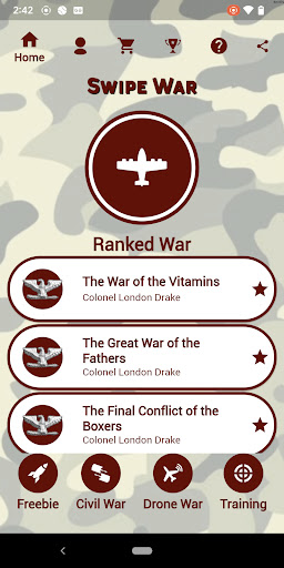 Swipe War is a battlefield, army vs army strategy game that is loosely based on a paper war game played with a pencil by children from the 1970s. To start each player purchases and deploys an army with 40 points. Units have varied costs and abilities, so arrange your army on the battlefield as desired. The player will be positioned on the bottom half of the battlefield and will always swipe up at the enemy army deployed on the top half of the battle.