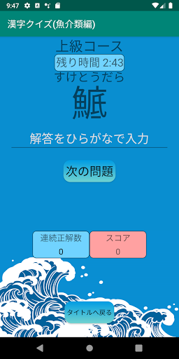 ただクイズに答えるだけのノーマルモード、正解するごとにスコアが増えるタイムアタックモード、間違った問題が確認できる学習モードがあります