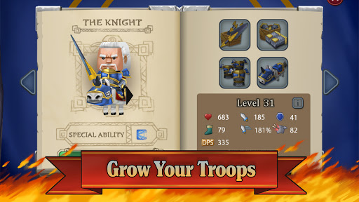 ★ Unlock more powerful units, knight, artillery as you progress into the game, and buy equipment for them to gain more stats and get stronger!