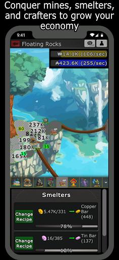 ★ Mines generate ores continuously, such as copper ore, tin ore, etc. You can upgrade them to produce more.