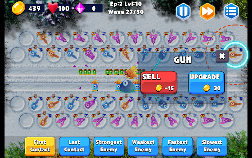 First Contact : First contacted enemy will be the main target. (default for all towers)