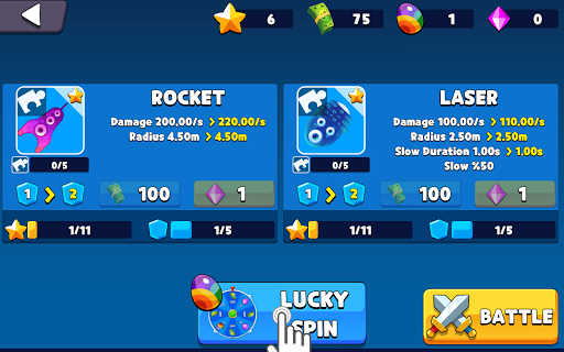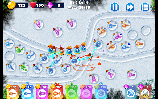 Every tower has 3 upgrade levels.To upgrade, tap on desired tower and click the “Upgrade” button