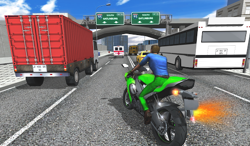 Get on your motorcycle and ride through city. Dodge traffic vehicles while driving at crazy speeds, earn points and buy better motorcycles in this racing game.
