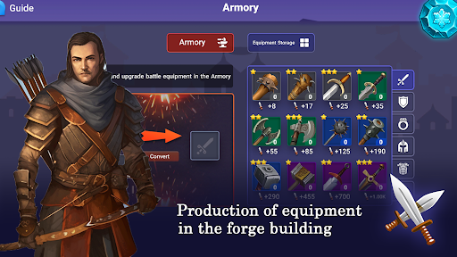 Build an empire worthy of a king, upgrade hero cards, organize internal affairs, and strategize for the best deck in this never-ending struggle for power. Join established guilds or forge your own clan, the choice is yours! Tower defense with the help of legendary heroes! A wide variety of troop types, craftable gear, flexible hero combinations, and strategy on a macro scale awaits!