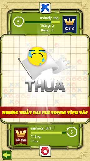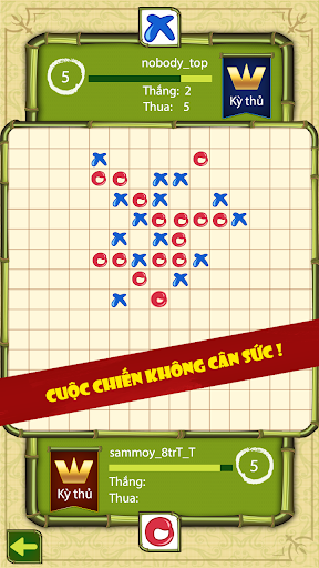 – Mỗi lượt bạn tích vào 1 ô trống sao cho được 5 ô liền nhau theo đường thẳng là thắng.