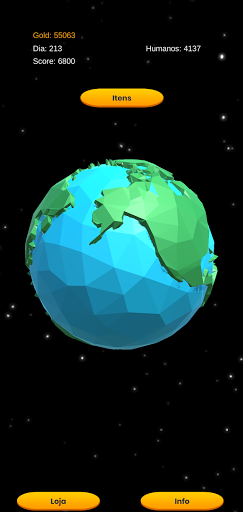 Aumente seu Gold clicando no planeta, e compre itens para controle da população humana que aumenta a cada instante, suba de score de tempos em tempos, o jogo contém eventos aleatórios que acontecem no planeta.