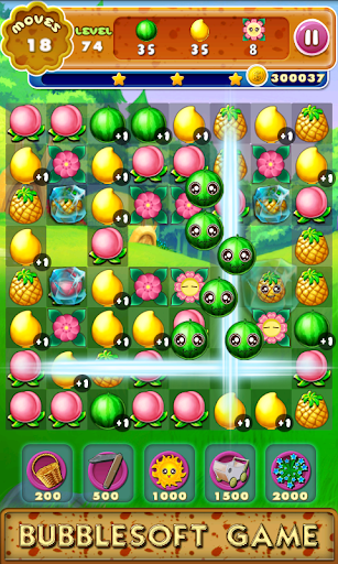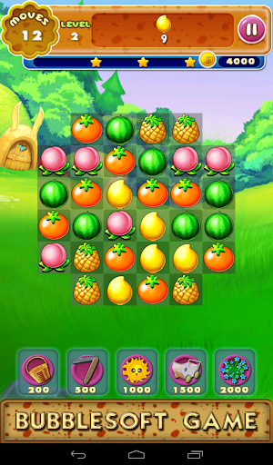 1.Switch the adjacent fruits,Make 3 or more with the same type together to eliminate them.Collect cute crops mixed with fruits and flowers showed on the top to win the levels before you run out of moves.And the mud bellow the fruits will be collected too.