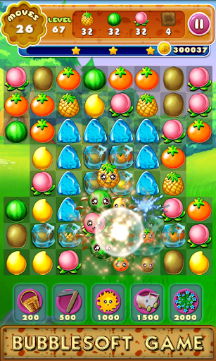 4.The fruits bellow Ice can’t be moved.Match 3 or more fruits together,the ice will be removed.