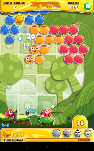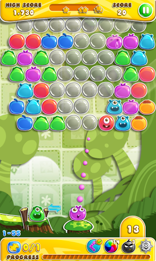 – Tap the screen to shoot the bubble to group 3 or more the same color bubbles to make them burst;