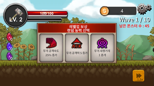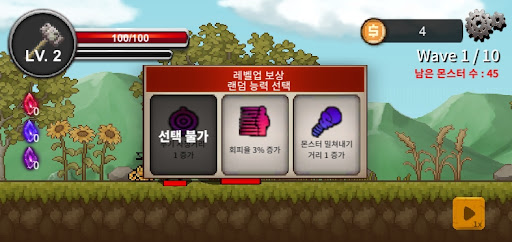 랜덤 능력 선택 디펜스 : 불굴의 용사는 몰려오는 적을 막기 위해 랜덤으로 나오는 능력들 중 하나를 선택하는 전략 디펜스 게임입니다!