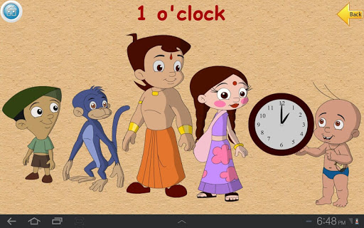 This app teaches TIME and CLOCK reading using Chhota Bheem.