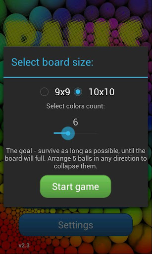 The goal – survive as long as possible, until the board is filled. Tap a ball and move it to empty place. Arrange 5 balls of one color in any direction to explode them. Destroy as much balls as possible, clear your board! Get a high score! Looking to leaders, this game would be infinite, but not for everyone!