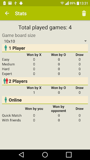 * Ability to switch between different board sizes (3×3, 6×6, 8×8, 10×10)