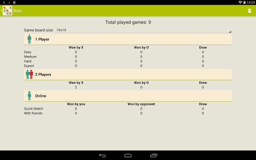 * On boards bigger than 3×3, player should put 5 marks in a horizontal, vertical, or diagonal row to win the game. Also known as “Gomoku” or “5 in a row” game.