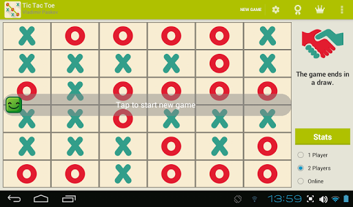 Tic-tac-toe is a game for two players, X and O, who take turns marking the spaces in a 3×3 grid. The player who succeeds in placing three respective marks in a horizontal, vertical, or diagonal row wins the game. If the grid is full and there is no winner, the game ends in a draw.