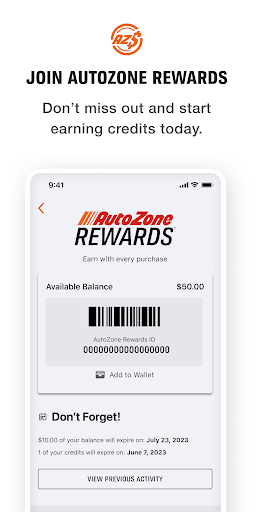 Track your AutoZone Rewards balance right on the home screen. Not a member? Sign up today to start earning money for your purchases.