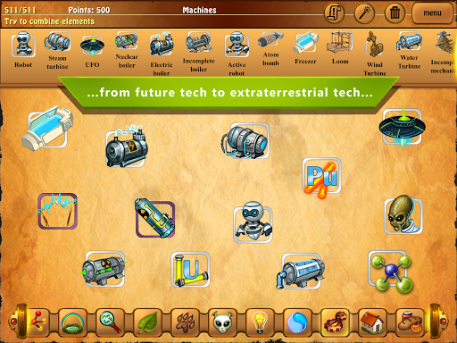 Throughout history, humans have always been eager to explore the world they inhabit. Human efforts resulted in significant progress, from the simplest of tools to high-tech industrial plants and flying machines. If you think about it, however, some time ago there was nothing but the basic elements of nature: fire, water, earth, and air. These very things form the basis of all diversity. It sounds incredible, doesn’t it? Can you throw a bunch of dirt into air and get a hot air balloon? Of course not. And yet, these elements of nature are at the heart of nearly all objects, from an hourglass to a complex engineering facility. As a player, we offer you a different kind of game, a puzzle in that allows you to explore and build your own surroundings. You will uncover many secrets that concern the true nature of all things. Alchemy Classic gives players a unique chance to become a real explorer and creator!