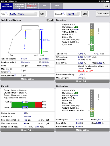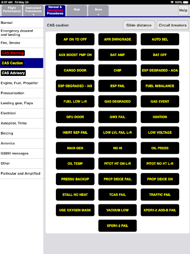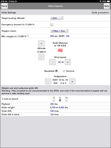 TBM Performance computes all the useful performance numbers for flight planning for Daher (Socata) aircraft. It includes calculations for takeoff, landing, climb, cruise, descent, instrument procedures as well as emergencies. The app also has an interactive Emergency Procedure checklists and a circuit breaker finder. It also includes an interactive hold calculator, a risk analysis tool, and an emergency glide distance calculator that handles head and tailwinds.