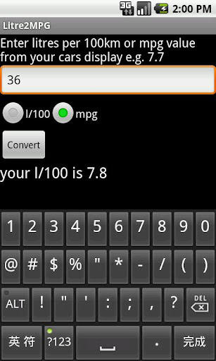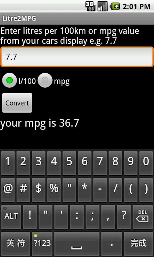 Convert between miles per gallon (mpg) and litres per 100kms.