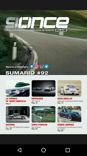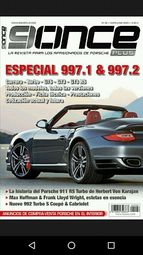 9ONCE PLUS es la única revista bimestral independiente en el mundo y en español, dedicada exclusivamente a la marca Porsche.9ONCE PLUS ofrece una información rigurosa sobre todos los modelos de Porsche tantos modernos como clásicos, guías de compra, comparativas, pruebas, cotización y más temas relacionados con la marca Porsche. 9ONCE PLUS tiene una importante selección de vehículos de ocasión de profesionales y particulares.