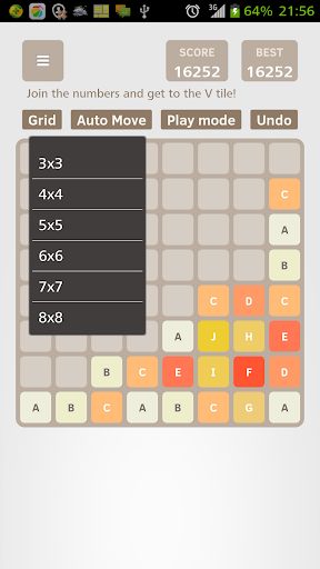 5. Survival: It pop up a tile every 0.5 seconds, merge the tiles as fast as possible. it will game over after the tiles full all grids.