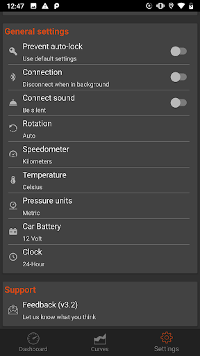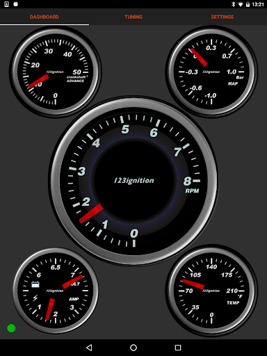 Now, with the engine running, your phone or tablet can be used to ‘TUNE’……one can see the engine-speed, the generated advance, the time, the temperature of the distributor, battery-voltage, spark-energy, vacuum/boost, and…(provided your device is equipped with a GPS-module) the speed of the car.