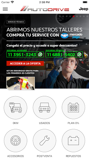AutoDrive Concesionario Oficial para las marcas Chrysler Jeep Dodge Ram y Mopar de Argentina. Comercializamos vehículos Okm y Usados Exclusivos, Servicio de Postventa, Repuestos y Accesorios. Nos encontramos en la ciudad de Buenos Aires y ofrecemos atención personalizada en nuestras dos sucursales : Av.Francisco Beiro 3888 Villa Devoto y Av. Corrientes 4567 Almagro. Sitio web : www.autodrive.com.ar