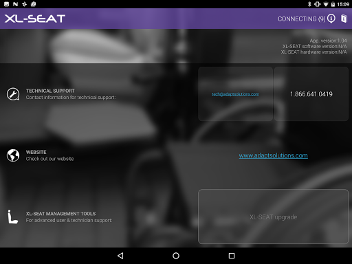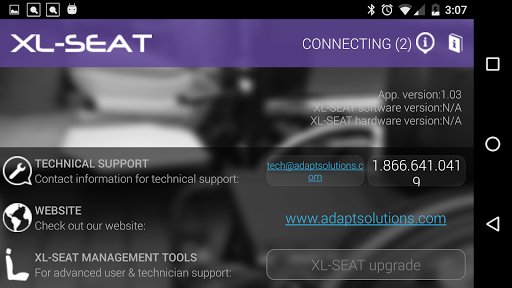 Adapt Solutions’ XL Seat programming software. Installation & service features for the XL Seat. At Adapt Solutions, customer service is important to us. If you have any difficulties with the app, please contact us at [email protected] The XL Seat app was developed for use by qualified mobility equipment installers that work closely with Adapt Solutions. It is required to install the innovative access solution – the XL Seat. This product was designed to assist a person with limited mobility in or out of their vehicle. The XL Seat uses the vehicles’ seat and has many features that are a benefit to a comfortable ride. The XL Seat IT app allows the technician that installs the seat base into a vehicle to control the movements of the seat as well as to program the movements and customize them to the vehicle and client. Updates will offer new vehicle applications and upgrades to our system.