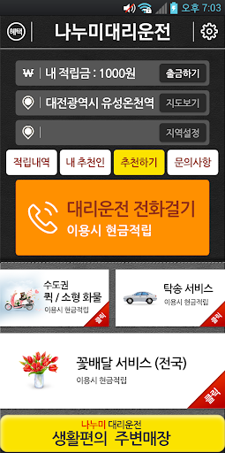 * 대리운전은 기본이고 퀵서비스, 꽃배달까지 한번에 다 되는 어플입니다.
