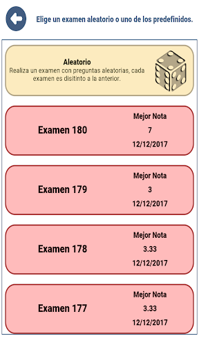 – Realizar exámenes predefinidos. Los exámenes predefinidos no repiten preguntas entre ellos, por lo que si realizas todos los exámenes te aseguras haber visto todas las preguntas.