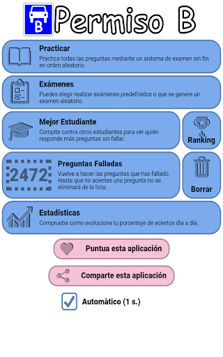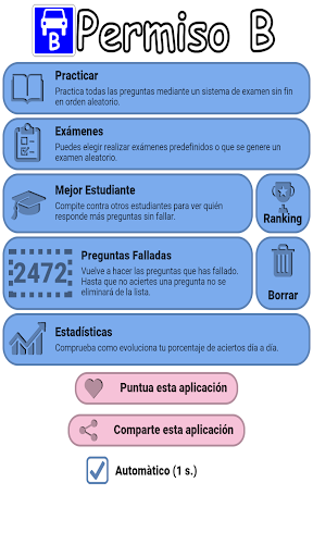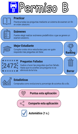 Gracias por utilizar la aplicación y suerte en el examen teórico para obtener el carnet B de conducir.